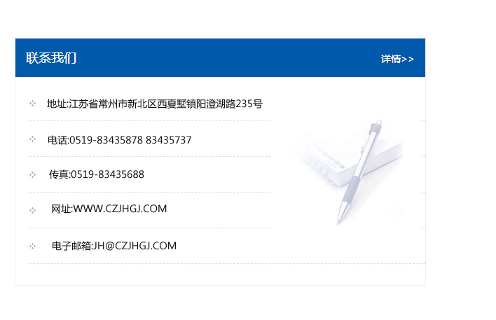 地址:常州市新北區友邦商務大廈1幢16、17層  電話:0519-85101652  傳真:0519-85112595  郵編:213022  網址:www.cz-jiayue_cn.wanwanyule.com  郵箱:xiajifengaa@163.com
